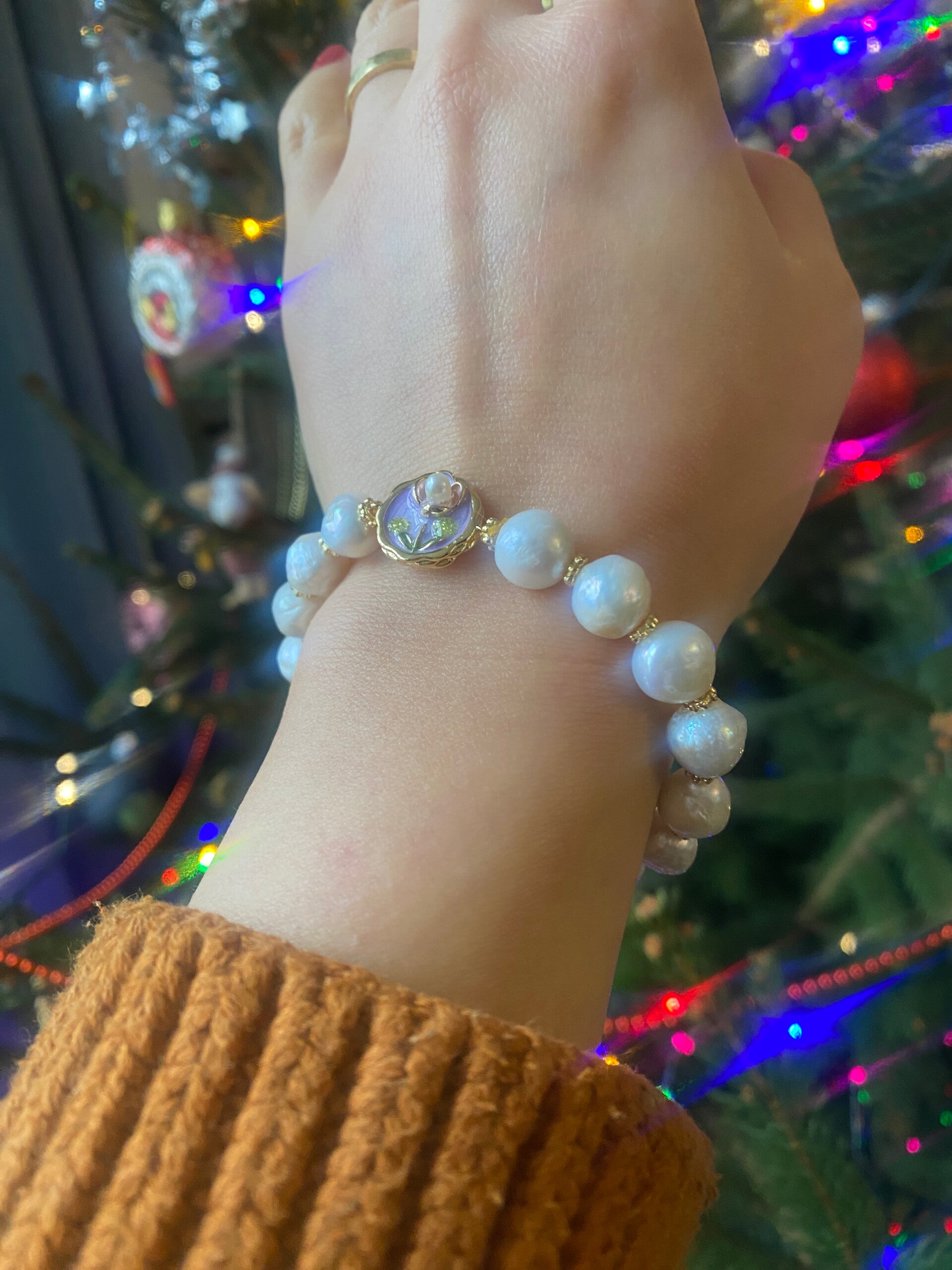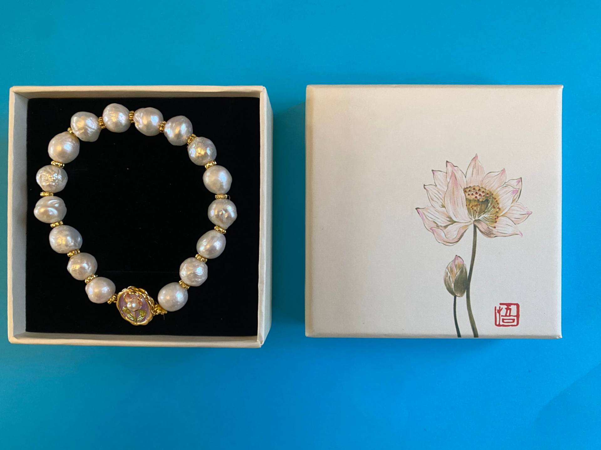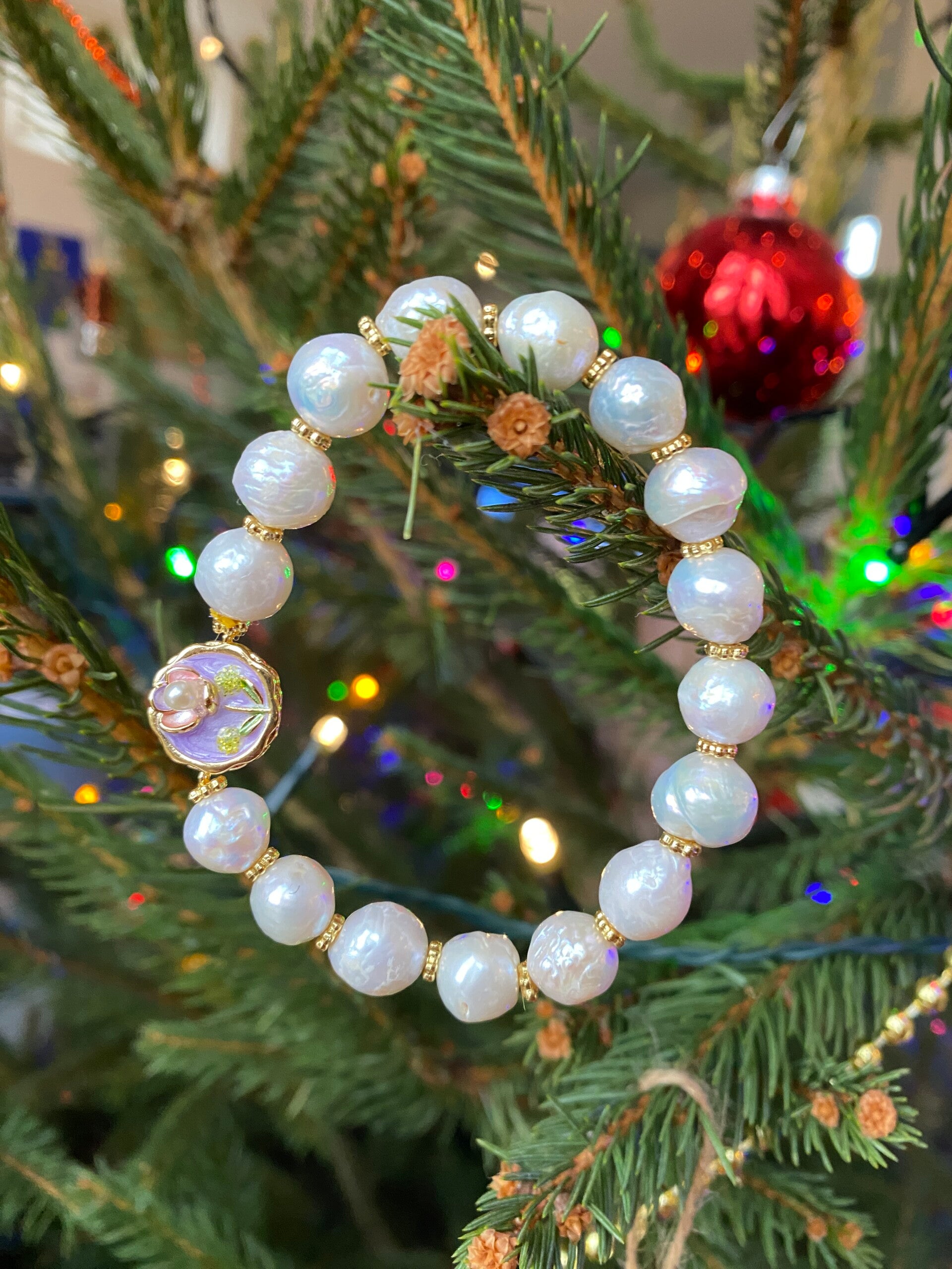 handmade bracelet with Natural Freshwater Pearls, Elastic Cord