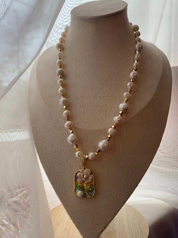Natural freshwater pearl necklace with a removeable hanger