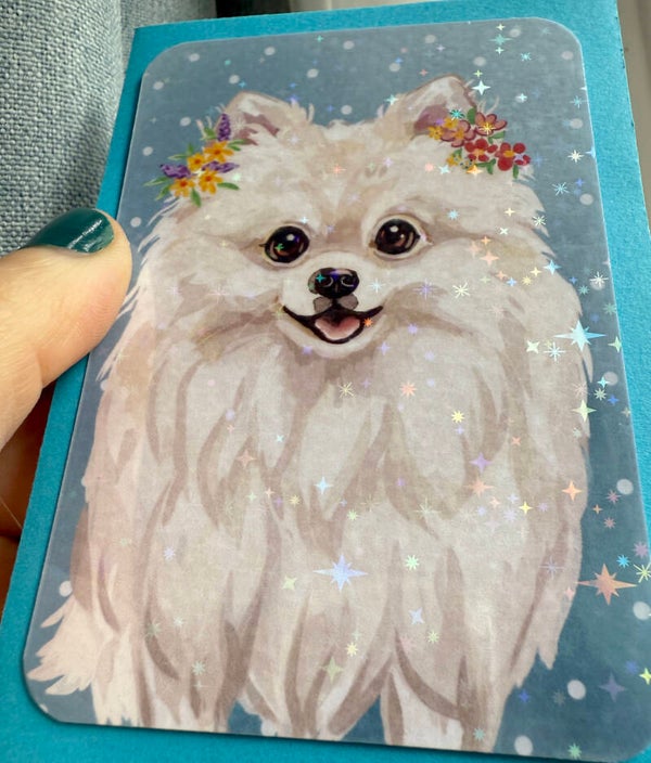 mini glitter card with envelope <White Pomeranian>