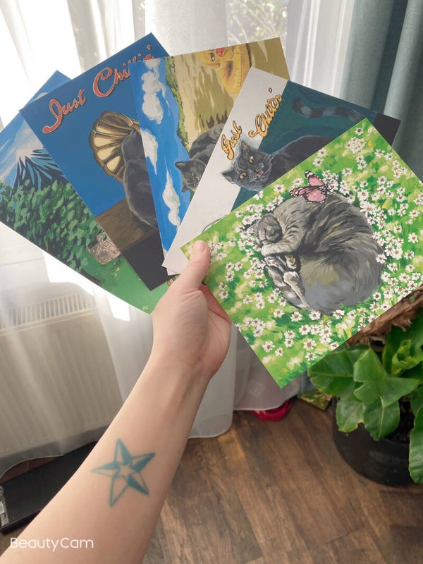Set of 5 Just Chillin' postcards, 14.8 x 21 cm